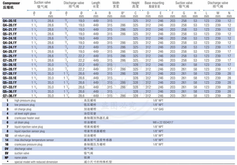 壓縮機型號