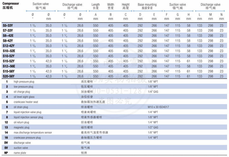 | 曲軸箱加熱器[230V,其他電壓需訂制] | ○ [50W] | ○ [50W] | ○ [70W] | ○ [70W] | ○ [150W] | ○ [150W] | |